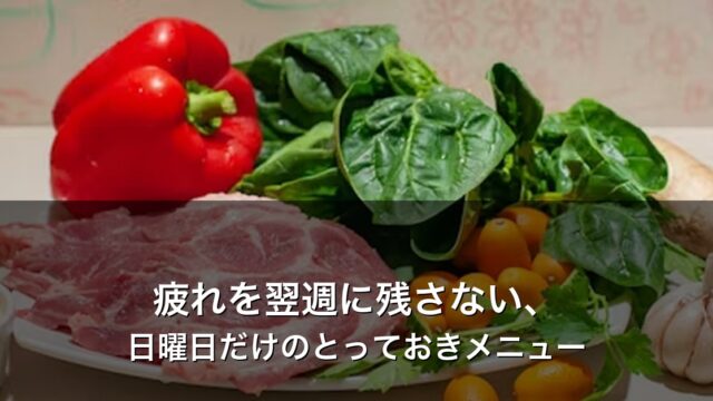 栄養・健康 疲れを翌週に残さない、日曜日だけのとっておきメニュー。 睡眠だけでは疲れが取れない方へ。豚肉のビタミンB1が疲労回復に効く理由と、日曜夜におすすめのレシピ3選を紹介。月曜の体の重さが変わります。 2026.04.05 栄養・健康